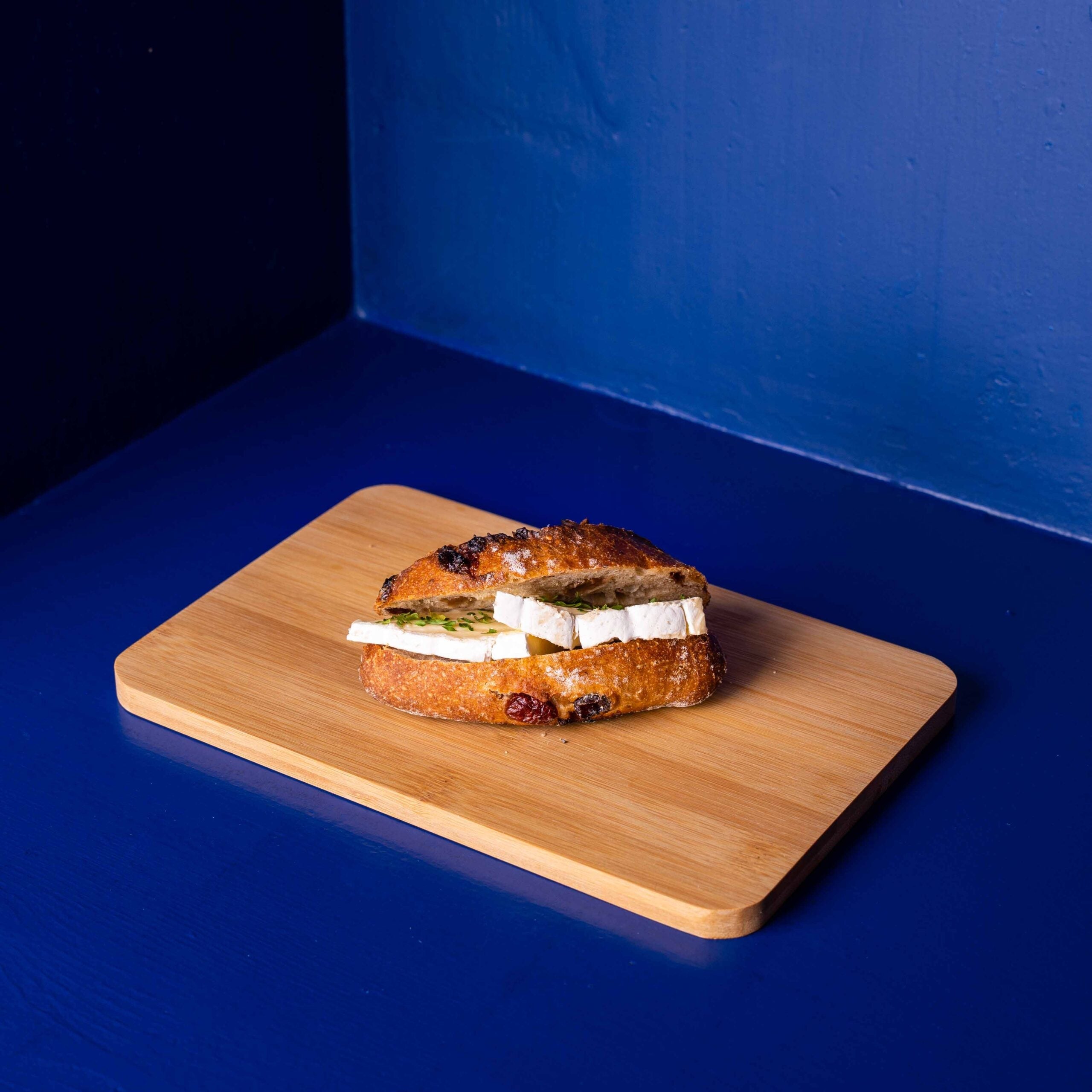 Petit pain au brie: pain aux fruits (abricots, canneberges, raisins secs et noix).