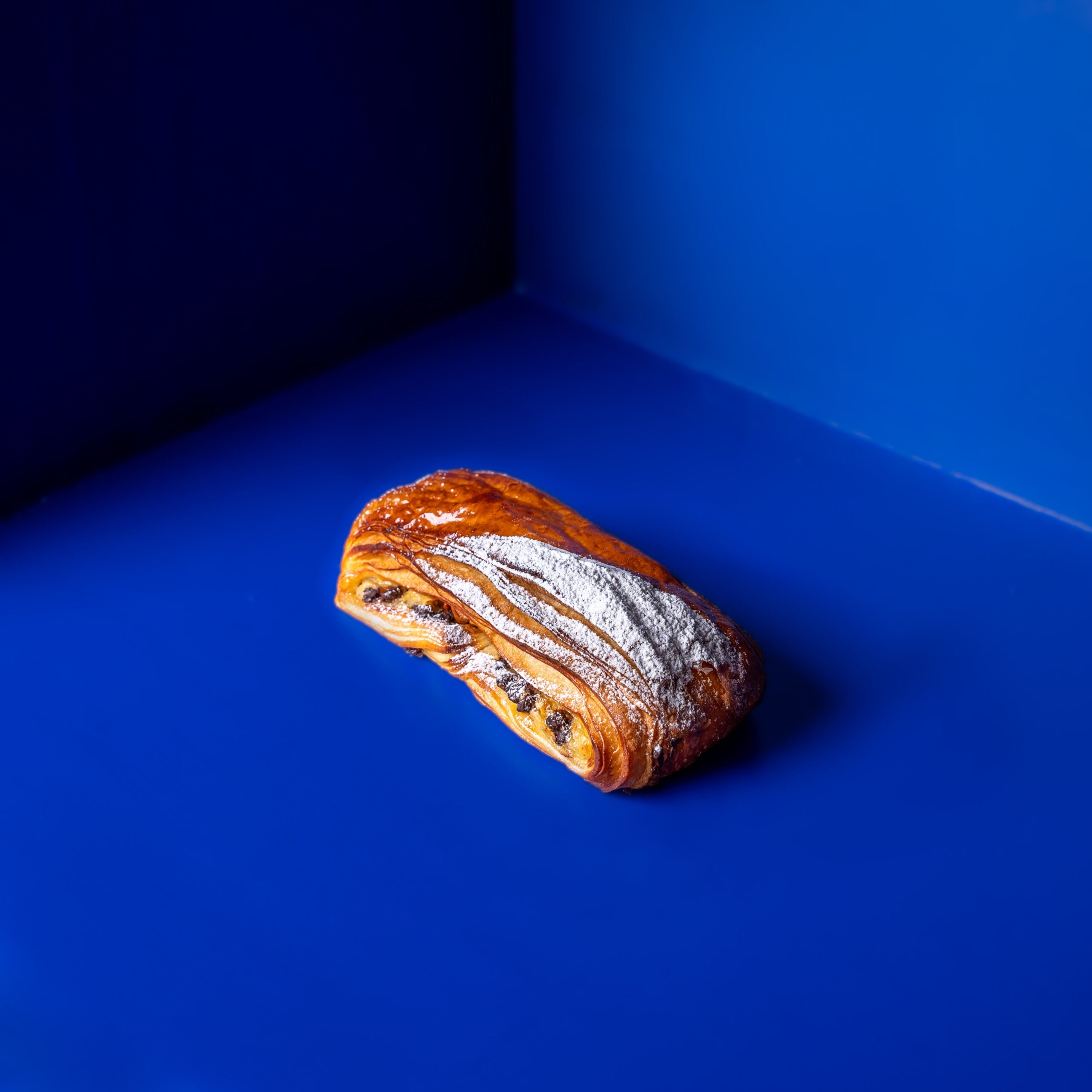 Le “Suisse” est une viennoiserie composée d’une pâte feuilletée contenant de la crème pâtissière à la vanille et des pépites de chocolat, recouverte d’une fine couche de sucre poudre.