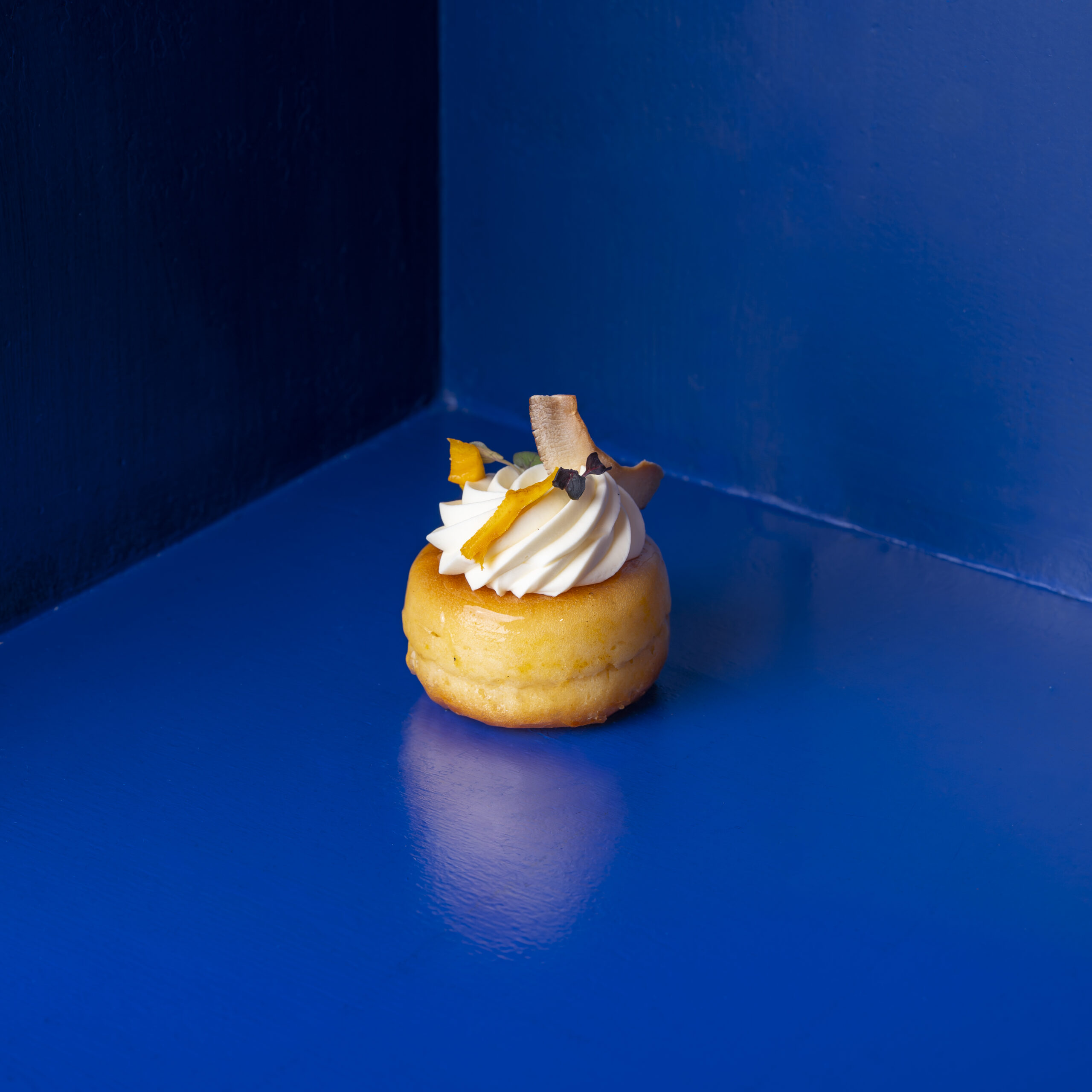 Baba au Rhum exotique : Un classique revisité. Un baba moelleux délicatement imbibé de rhum ambré, accompagné d’une touche exotique de mangue. Tradition et exotisme en parfaite harmonie.